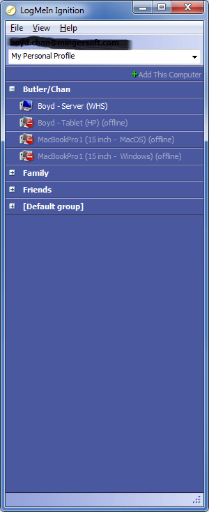 Now, if you dislike the idea of having to go through the website to connect to your computers you can use another product called LogMeIn Ignition. Basically, it is an application that runs on your desktop that gives you one click access to your computers.