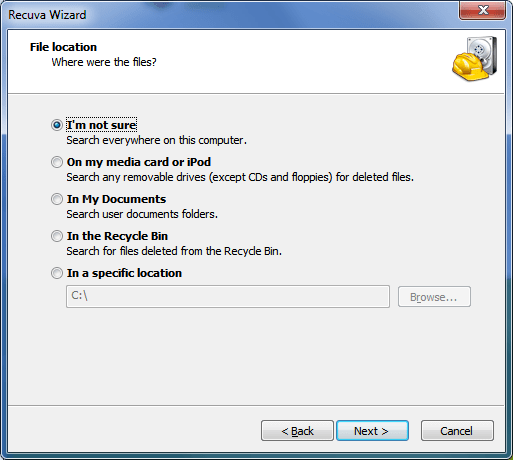 There’s a great little application called Recuva (pronounced “recover”) that you can set to work to find your lost files and the easy to follow wizard makes it a piece of cake.