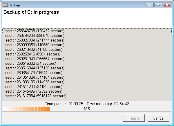 The backup using DriveImage XML on this particular computer will take about four hours instead of nearly eight using the Windows Vista backup utility.