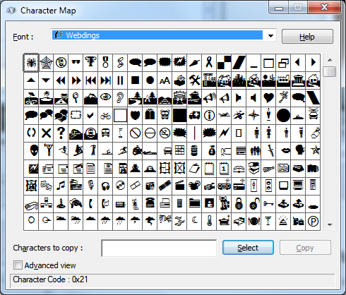 Sometimes we need to get a hold of certain symbols like the copyright symbol (i.e. ©) when we don’t know the keyboard shortcut (Alt + 0169) or we want to preview a whole stack of characters at the same time for unusual fonts like Wingdings and Webdings. Sure, for the latter you could open up Microsoft Word and punch every letter on the keyboard but that is quite a time consuming solution.