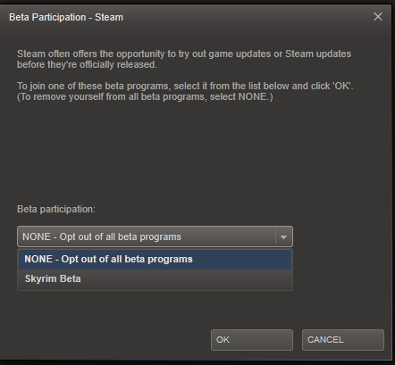 In the new window you can select which beta releases in which you want to take part and then click “OK”. You’ll be prompted to restart Steam after which your selection will be locked in. After that, it’s a matter of waiting!